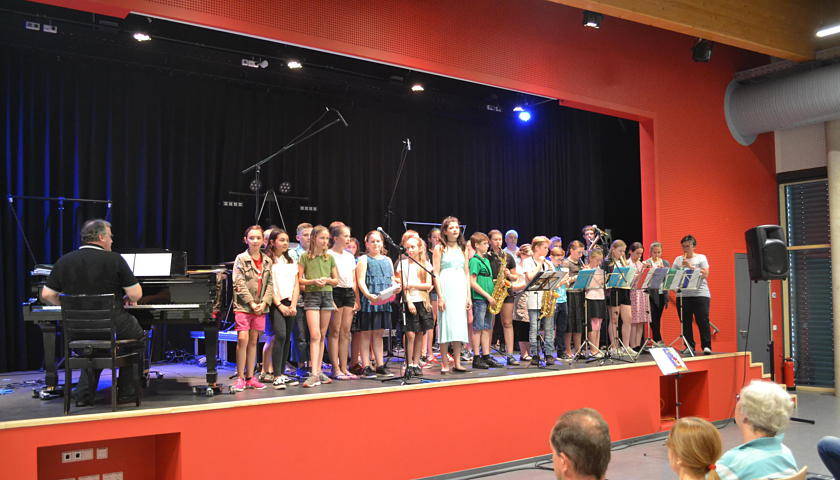Eingängige Stücke wie »Don’t worry, be happy« oder »Astronaut« brachten hiernach die Chöre der Jahrgänge 6 und 8 zum Vortrag. Dirigiert wurden sie von Gabriele Hierdeis und Hermann Wilhelmi.