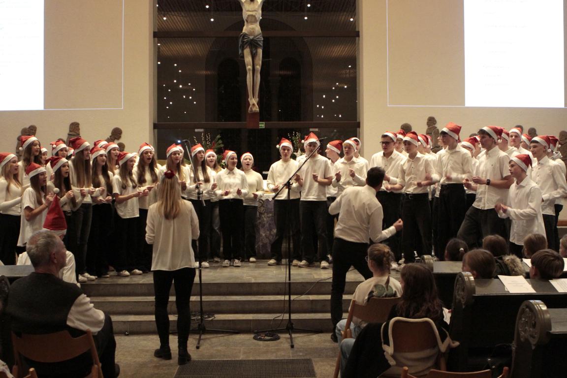 Die Klassen 5g und 6b sowie die Religionskurse 5rev1 und 6rev3 präsentierten unter der Leitung von Schulpfarrer Norbert Heide eine stimmungsvolle Version von „Es kommt ein Schiff geladen“. Der anschließende kurze Adventsimpuls des Pfarrers verband musikalische Eindrücke mit einer nachdenklichen Botschaft.