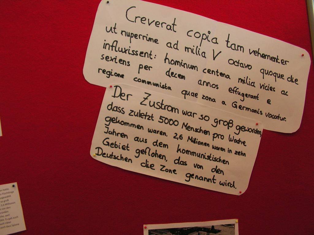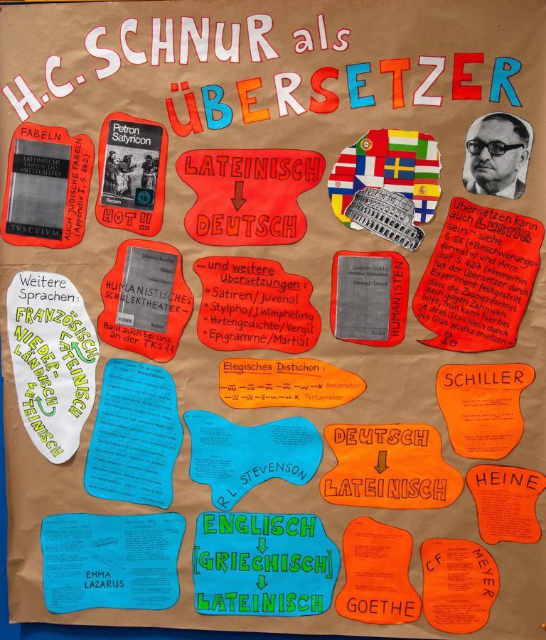 Im Anschluss an die Veranstaltung bestand für die Besucher die Möglichkeit, eine Ausstellung der Lateinkurse aus den Jahrgängen 10 und 11 zu besuchen, welche unterschiedliche Aspekte des behandelten Werkes aufarbeiteten und in kreativen Produkten umsetzten.
