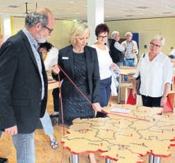 Beim anschließenden Rundgang durch die Ausstellung hieß es für die Besucher, die doch teilweise kniffligen Aufgaben zu lösen. So musste unter anderem das Sparkassen-Logo aus verschiedenen Puzzleteilen gelegt werden. Weitere interessante, analytische Überlegungen erfordernde Aufgaben sind das Knacken eines Codes oder das Feststellen der kürzesten Entfernungen zu den einzelnen deutschen Landeshauptstädten.