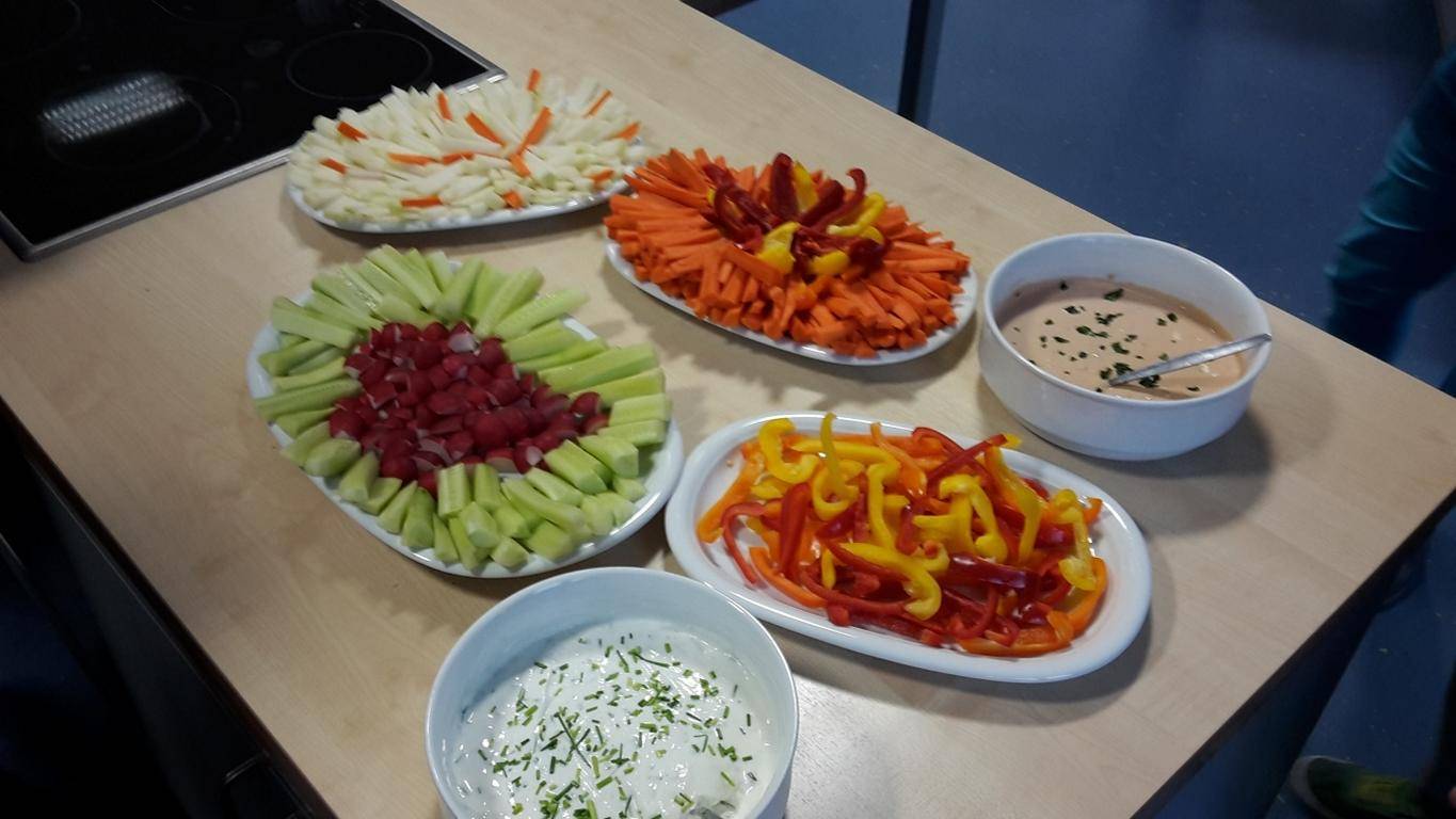 Im Mittelpunkt der Unterrichtsreihe standen einfache Gerichte, die auch zu Hause schnell zubereitet werden können. An fünf ausgewählten Rezepten lernten die Jugendlichen zusammen mit den Lehrkräften Rita Eller, Matthias Orth und Carina Zimmermann exemplarisch die Grundlagen der küchentechnischen Zubereitung von Lebensmitteln: coole Drinks, Power-Sandwiches, Fingerfood, die Prima-Pasta-Salate und Fruit-Dreams.